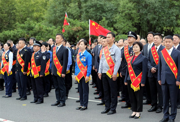 現(xiàn)職省級領(lǐng)導(dǎo),省直各部門、各人民團(tuán)體主要負(fù)責(zé)同志,省級各民主黨派主要負(fù)責(zé)人,機關(guān)干部、學(xué)校師生、企業(yè)職工、武警官兵、公安民警、消防救援指戰(zhàn)員和社會各界群眾代表等3萬多人參加升國旗儀式。