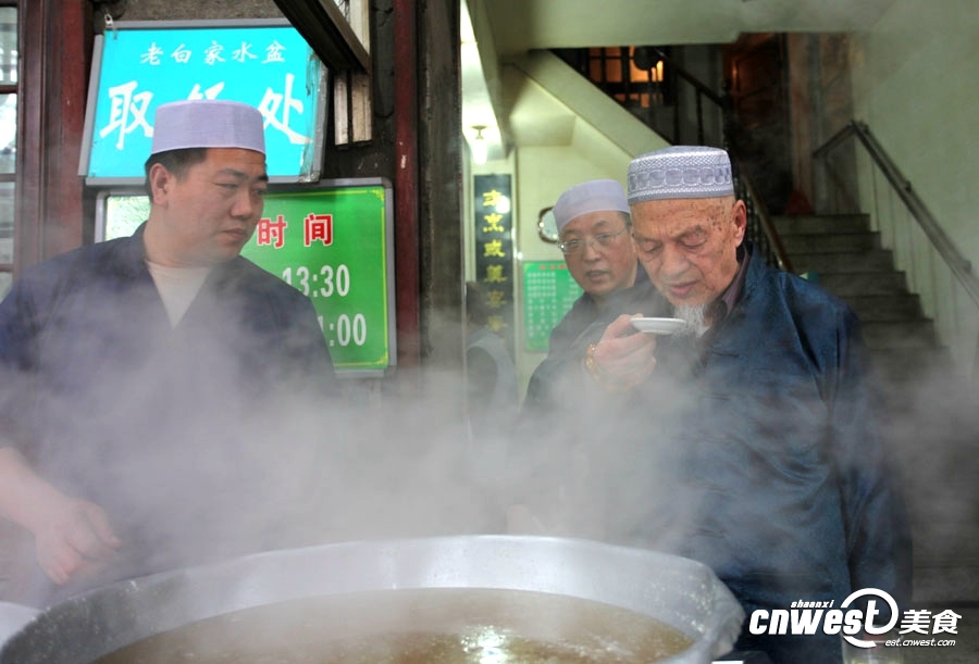 話說西安回坊的北廣濟(jì)街上有個(gè)老白家水盆,看似貌不驚人,卻有一百多年的歷史,這個(gè)家族已有五代人傳承制作水盆羊肉的技藝。老白家水盆的第三代傳承人白玉亭,已經(jīng)83歲了,如今,老爺子依然每天坐鎮(zhèn)自家的“老同盛永”號(hào),一日三餐,必食自家的水盆羊肉。一則離不開自家這口,二則監(jiān)督兒女們的出品質(zhì)量。D8w安康新聞網(wǎng)