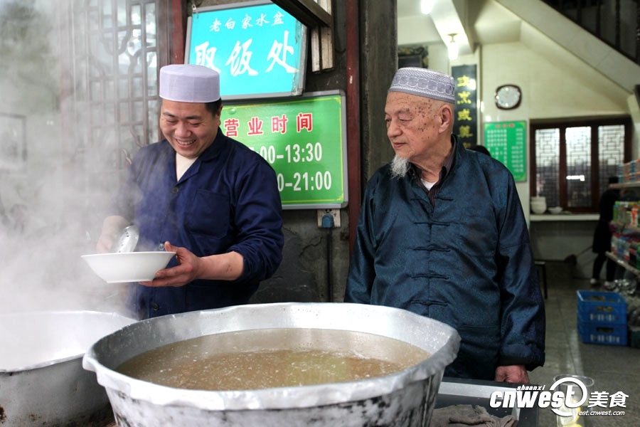 水盆羊肉的制作說來簡單,做好了,卻也不易。新鮮的牛羊肉要用淡鹽水浸泡,漂凈血水。以新鮮的羊骨熬湯,熬三四個(gè)小時(shí)后,再下肉,煮肉,牛肉要煮七個(gè)小時(shí),羊肉要煮三個(gè)小時(shí),而調(diào)料包中的桂皮、草果、大香、小香、丁香、良姜等等,全都要按老規(guī)矩來,幾斤肉配多少料,都有定數(shù)。在老白家,一百多年來,從未改變過。D8w安康新聞網(wǎng)