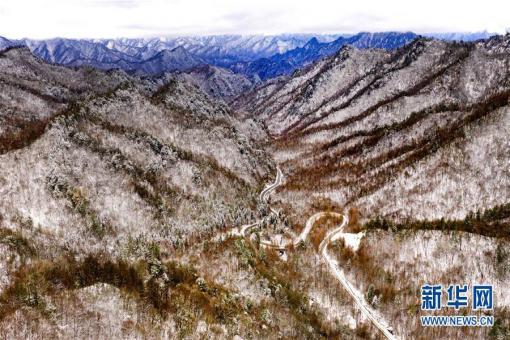 11月5日無(wú)人機(jī)拍攝的陜西省漢中市佛坪縣涼風(fēng)埡景區(qū)雪景。 當(dāng)日,秦嶺初雪,色彩斑斕的秋色在白雪映襯下,美如畫卷,置身其間,恍若進(jìn)入童話世界。 新華社記者陶……