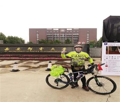 為了中秋節(jié)與家人團(tuán)聚,63歲的王長寶從遼寧丹東騎自行車抵達(dá)西安。 記者 趙麗莉 攝 王長寶從丹東老家出發(fā) 63歲的王長寶在今年這個中秋節(jié)前,完成了一個挑戰(zhàn)自……