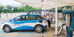 13日,在鳳城二路附近一處充電站,梁師傅在為自己的新能源電動(dòng)出租車充電。記者 張宇明 攝一大早從家里出門(mén),沿著市區(qū)前行,趁著歇腳的工夫,市民駕駛的電動(dòng)車便……