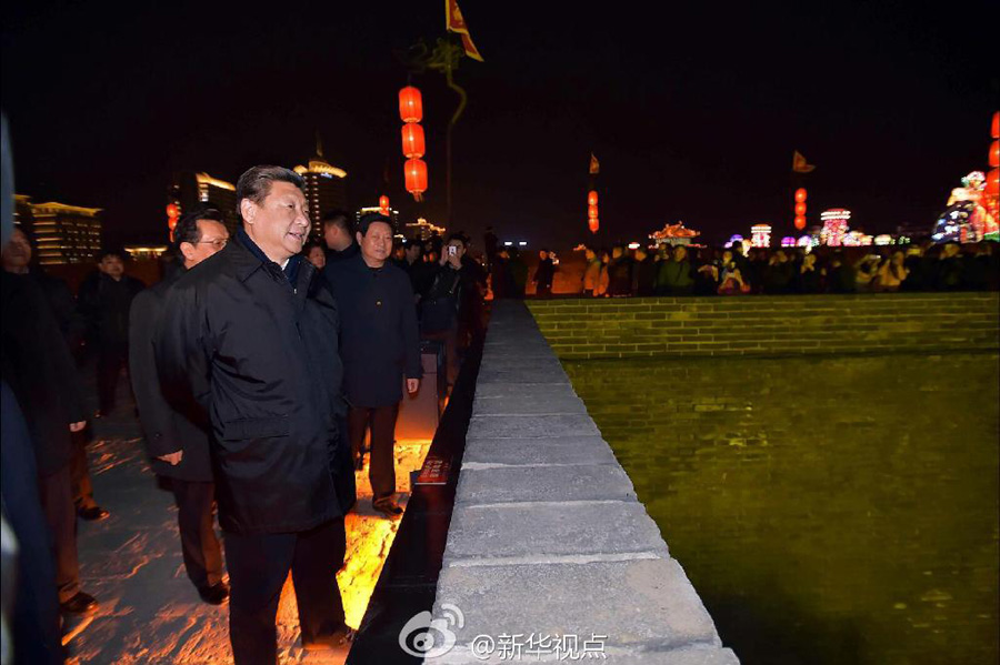 習(xí)近平總書記2月15日晚上登上西安古城墻,同市民親切交流。新華社記者霍小光、李學(xué)仁、李濤 攝……