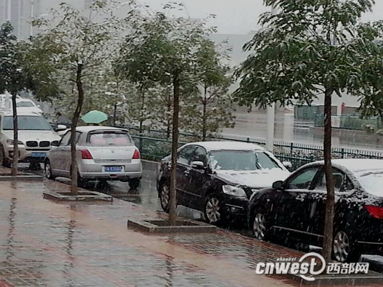定邊迎來降雪。(網友“飛魚2333” 攝)路邊的汽車上有少量積雪。西部網訊(記者 譚文婷) 今天(10月11日)早上,陜北氣溫驟降,定邊迎來了降雪。8點半左右,定……