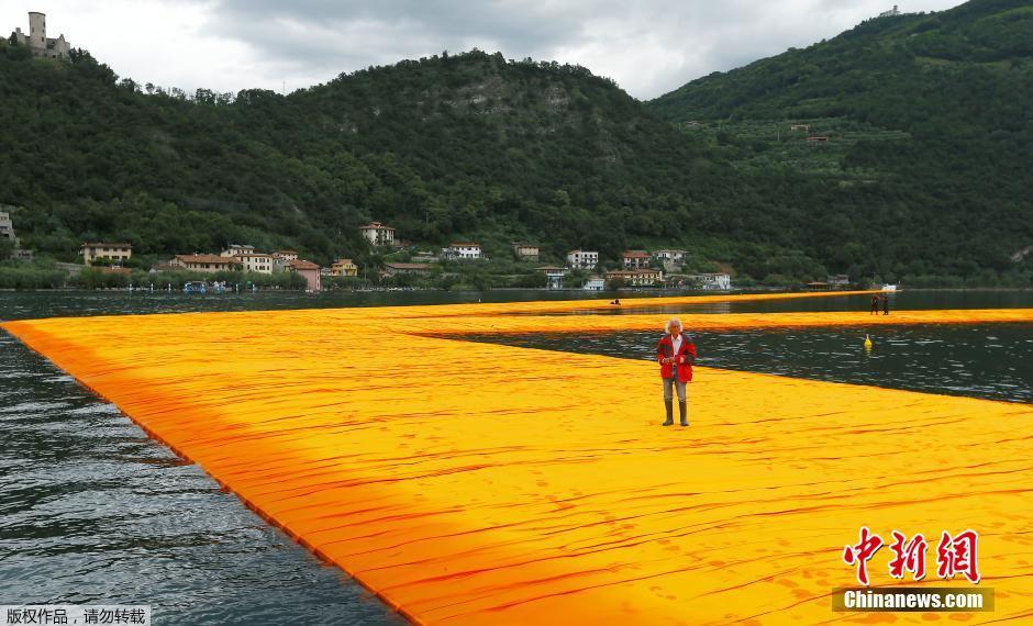 意大利湖面建“黃金大道” 直通湖心島