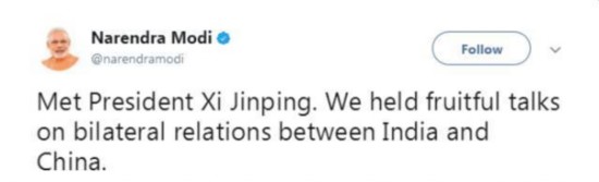 “見了習近平主席。我們就印中雙邊關(guān)系舉行了富有成果的會談!