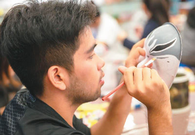 圖為一名華裔青少年在進行臉譜繪畫。MAp安康新聞網(wǎng)