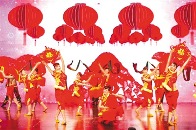 | 中國(guó)歌劇舞劇院演員表演的舞蹈《張燈結(jié)彩》。 |