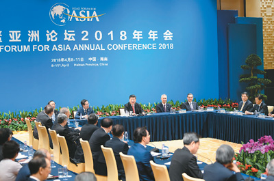 | 四月十一日,國家主席習(xí)近平在海南省博鰲同出席博鰲亞洲論壇二○一八年年會(huì)的中外企業(yè)家代表座談。 |