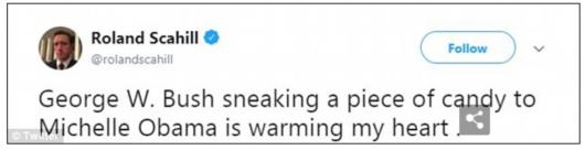 “看到小布什從妻子手中接過(guò)糖果給米歇爾,同時(shí)又試圖保持謹(jǐn)慎,讓我對(duì)共和黨的未來(lái)充滿希望!