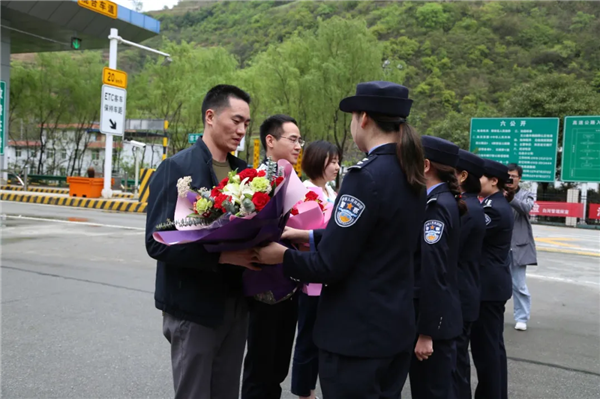 歡迎儀式上,大家用熱烈的掌聲歡迎專案組凱旋,民警代表為他們一一獻(xiàn)上了鮮花。
