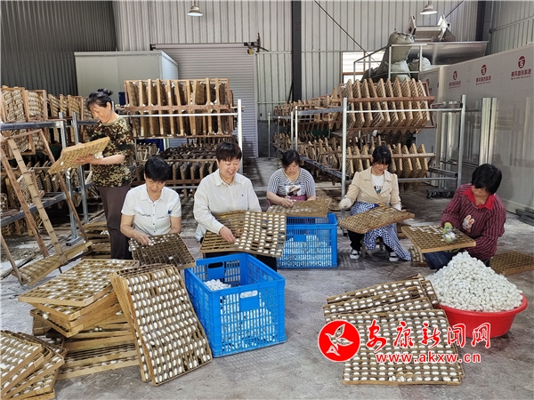 本網(wǎng)訊(通訊員 彭佳芝)眼下正是春繭豐收上市的季節(jié)。這幾天,白河縣冷水鎮(zhèn)興隆村隆康農(nóng)林專(zhuān)業(yè)合作社的標(biāo)準(zhǔn)化養(yǎng)蠶室里一派熱鬧繁忙景象,數(shù)百?gòu)埛礁翊卣R排列,如鴿子蛋般大小的雪白蠶繭均勻分布其中,工人們正在抓緊摘收鮮繭,忙得不亦樂(lè)乎。不一會(huì)兒,蠶室里就碼起了成堆的小“雪山”。