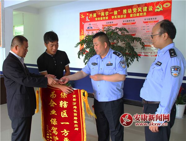 安康新聞網(wǎng)訊(記者 張喬 通訊員 羅延炎 )5月8日上午,在高新分局花園路派出所的大廳里,來自陜建安康城區(qū)環(huán)城干道江北段建設工程項目部的負責人為感謝花園路派出所民警認真的工作態(tài)度和為企業(yè)保駕護航精神,特送來一面書寫“保轄區(qū)一方平安,為企業(yè)保駕護航”的錦旗,以表示對派出所民警工作的肯定和褒揚。