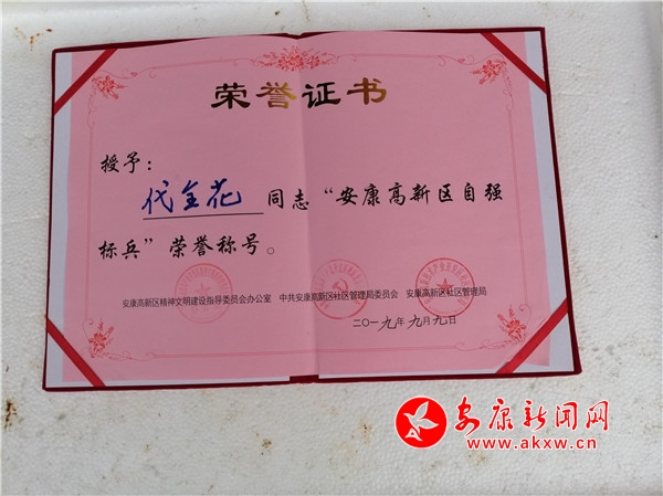 筆者從陳斌口中得知,2019年6月,代全花分別被安康高新區(qū)和五檔村黨支部、村委會(huì)授予“自強(qiáng)標(biāo)兵”和“自主創(chuàng)業(yè)模范”榮譽(yù)稱號(hào),去年一家成功實(shí)現(xiàn)了脫貧。
