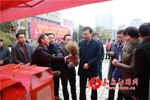 冬日的安康城區(qū)中心廣場,雖然天氣寒冷,但阻擋不了廣大市民爭相購買農(nóng)產(chǎn)品的熱情,現(xiàn)場的特色農(nóng)產(chǎn)品吸引了眾多市民前來品嘗、購買。參會的市區(qū)領(lǐng)導(dǎo)和全區(qū)231個貧困村的“第一書記”們當(dāng)起了推銷員,現(xiàn)場為各村的特色農(nóng)產(chǎn)品代言推廣。