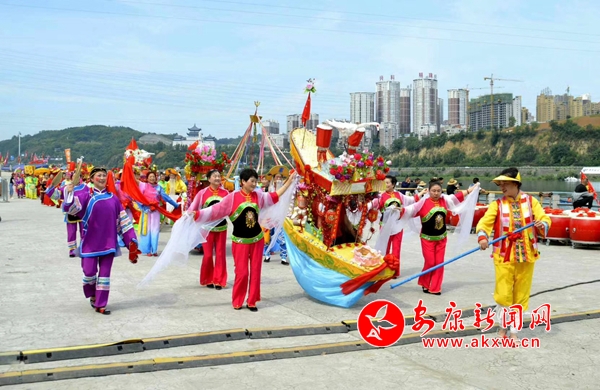 在龍頭祭祀儀式、龍舟競技展示、“非遺”展演及民族歌舞表演等主題活動之后,來自漢濱區(qū)的民間文藝社團驚艷登場,深受大眾喜愛的火龍、舞獅、彩龍等民俗節(jié)目伴隨著隊員們孔武有力的舞動跳躍博得現(xiàn)場陣陣歡呼;喜慶熱烈的采船、花轎表演,俏皮滑稽的大頭娃娃、濟公,栩栩如生的西游記人物展演以及酒缸、花連棍、戲曲人物、民族舞展演等讓現(xiàn)場觀眾目不暇接,文藝隊員們在展演中大放異彩,點燃了現(xiàn)場觀眾的激情。