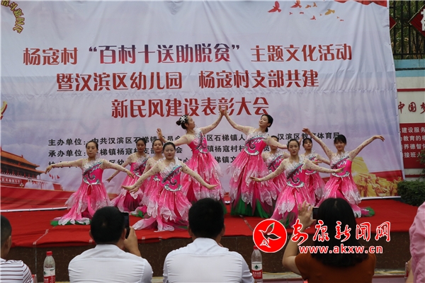 在熱鬧歡快的花鼓聲中,“好鄉(xiāng)賢”楊堯禮帶著孫子登臺,用純樸的方言唱出了《掃黑除惡樹新風(fēng)》,贏得了在場群眾的陣陣掌聲;在村民自編自演的小品《摔碗》中,詼諧的語言和感人的情節(jié),感動得臺下群眾眼泛淚花; 在漢濱區(qū)幼兒園老師們表演舞蹈的《一千零一個愿望》后活動落下帷幕;顒悠陂g,愛心人士胡國財代表陜西省安康市中福工程有限公司為10名準大學(xué)生捐贈了每人2000元現(xiàn)金,漢濱區(qū)幼兒園也送上了特殊的關(guān)愛。