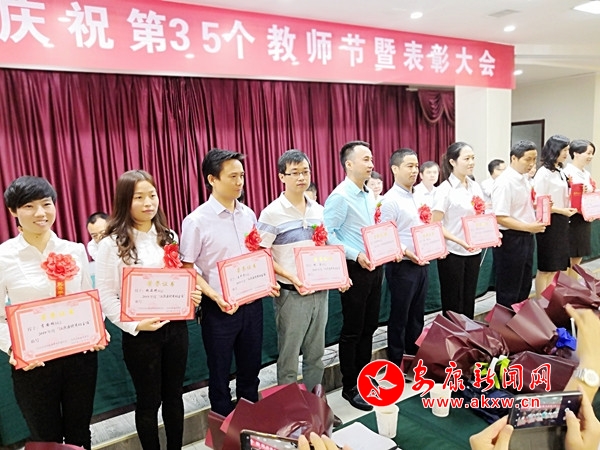 隨后,與會領導向漢濱高中等20個“教育工作先進集體”、徐平等20名“優(yōu)秀校長”、楊麗等20名“關愛少年兒童先進個人”、來榮平等30名“先進教育工作者”、范莉等60名“優(yōu)秀教師”、楊艷等50名 “優(yōu)秀班主任”、李曉琴等17名“最美鄉(xiāng)村教師”頒獎。漢濱高中黨委副書記陳滿琴、雙龍小學校長陳受選代表受表彰的先進單位和先進個人發(fā)言,分別介紹了推進學校發(fā)展的有效做法、關愛學生成長的真切感悟。