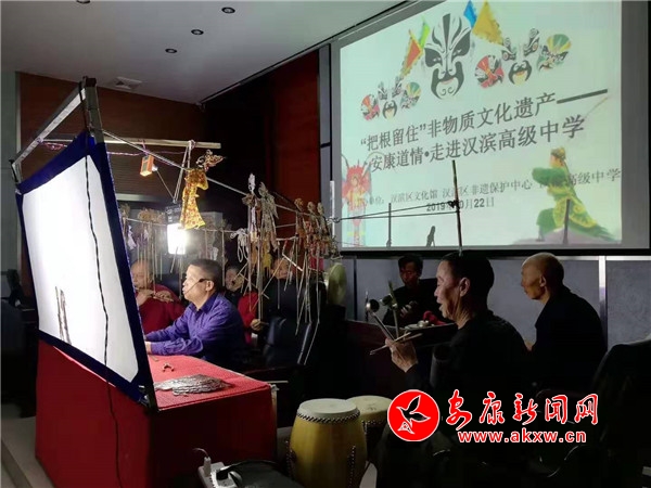 本網(wǎng)訊(通訊員 郭仲艷)10月22日,由漢濱區(qū)文化館、漢濱區(qū)非遺保護中心、漢濱高級中學共同舉辦“把根留住”——安康道情皮影展演進校園活動在漢濱高級中學開展,伴隨著悠揚婉轉(zhuǎn)的器樂聲響起,在老藝人們翻轉(zhuǎn)騰挪的手下,一個個栩栩如生的皮影人物在幕布上“活”了起來,F(xiàn)場的150余名師生被這一古老的傳統(tǒng)民間藝術(shù)深深吸引。