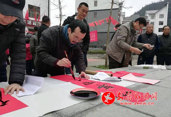 本網(wǎng)訊 (通訊員 惠星 郭仲艷)1月7日,“我們的中國夢”——文化進(jìn)萬家陜西文聯(lián)文藝小分隊省美協(xié)志愿服務(wù)活動走進(jìn)漢濱區(qū)雙龍鎮(zhèn),為這里的群眾送上春聯(lián)、書畫作品。