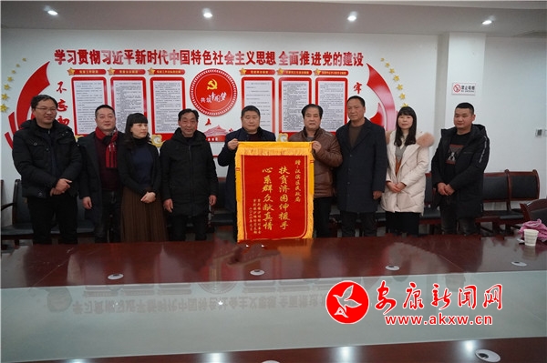 1月10日下午,漢濱區(qū)紫荊鎮(zhèn)沙壩村支部書記朱昌進一行將一面“扶貧濟困伸援手、心系群眾獻真情”的錦旗送到區(qū)民政局駐村幫扶工作組,真心感謝工作組對沙壩村的關(guān)心支持,感謝工作組心系沙壩村民冷暖、真情幫扶脫貧的深厚情義!