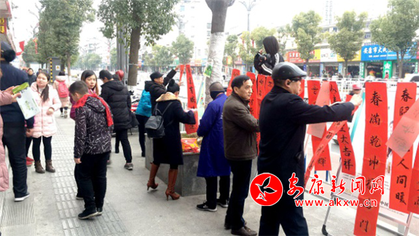 本網(wǎng)訊(通訊員 王艷 劉長青 趙小順)“迎新春、貼春聯(lián)”是中華民族的傳統(tǒng)文化,突顯了年味民味,一副副精美的春聯(lián),蘊含著辭舊迎新的美好祝福。2020年1月16日,漢濱區(qū)文化旅游廣電局、漢濱區(qū)文化館、新城街道辦分館在巴山中路舉辦“百村百名書法作者”義寫和2020年“文化小康行動——萬副春聯(lián)進農(nóng)家”活動。