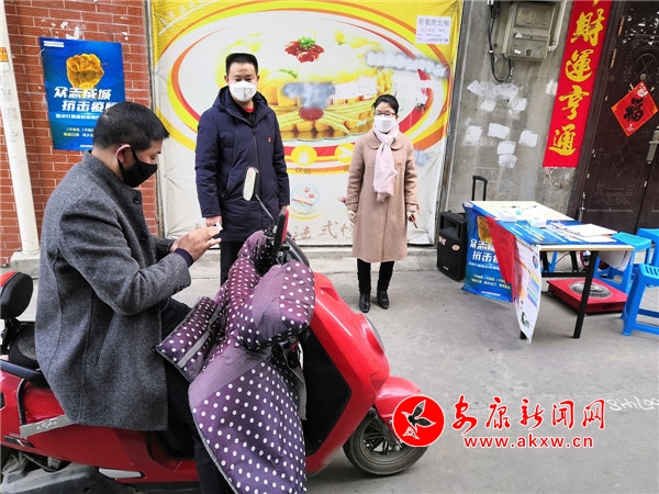 新鋪社區(qū)轄區(qū)老舊無(wú)物業(yè)小區(qū)多,黨校西巷里有5個(gè)老舊小區(qū),為筑牢疫情防控第一道防線,社區(qū)在巷口設(shè)立了疫情排查卡點(diǎn),社區(qū)工作人員不但要承擔(dān)戶外排查點(diǎn)的值守,還要承擔(dān)信息的核實(shí)和上報(bào)、帶社區(qū)醫(yī)生入戶測(cè)量體溫等任務(wù)。“五城聯(lián)創(chuàng)”幫扶單位安康市人大辦、市殘聯(lián)得知社區(qū)面臨困難后,市人大辦每天3名黨員、市殘聯(lián)1名黨員、中國(guó)聯(lián)通安康分公司1名黨員主動(dòng)到社區(qū)報(bào)到領(lǐng)崗,助社區(qū)共戰(zhàn)“疫”。他們不畏嚴(yán)寒、不懼風(fēng)險(xiǎn)、嚴(yán)防值守,對(duì)每一位進(jìn)出小區(qū)的人員認(rèn)真登記、仔細(xì)詢問(wèn),嚴(yán)格做好居民小區(qū)外來(lái)人員勸返,耐心勸導(dǎo)小區(qū)居民多居家、少外出,及時(shí)向小區(qū)群眾發(fā)放防控知識(shí)宣傳資料。