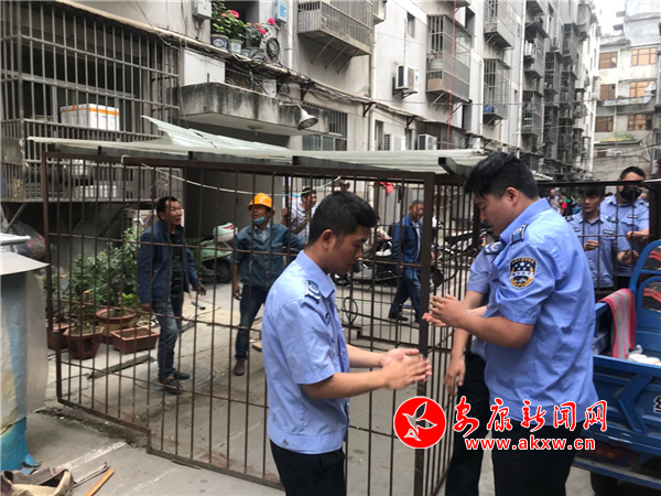 面對(duì)轄區(qū)的各種環(huán)境治理難題,鼓樓社區(qū)上下聯(lián)動(dòng),縱向請(qǐng)求支援,橫向詢求配合,聯(lián)合市住建局,環(huán)衛(wèi)所,老城創(chuàng)建辦、兩違辦,社區(qū)民警開展了一系列整治行動(dòng)。開展整治行動(dòng)之前,采取“打招呼、講政策”的方式告知居民群眾,針對(duì)“三堆六亂”問題,聯(lián)合環(huán)衛(wèi)所統(tǒng)一利用渣土車集中清理,針對(duì)小區(qū)私設(shè)“地樁”問題,口頭告知業(yè)主的同時(shí),上報(bào)城管部門采取立即拆除措施。針對(duì)亂搭亂建問題,聯(lián)合老城創(chuàng)建辦、兩違辦限時(shí)拆除違章違建,針對(duì)下水管道口破損問題,采取填補(bǔ)硬化。