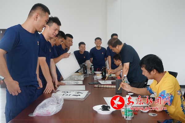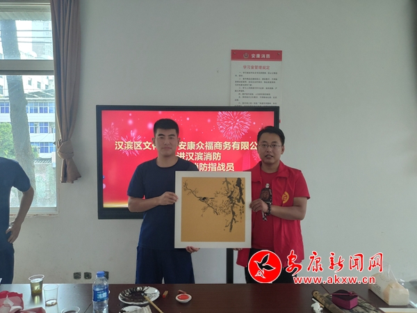 在活動現(xiàn)場,愛心企業(yè)為消防指戰(zhàn)員們送上了精心準(zhǔn)備的解暑慰問品。來自漢濱區(qū)文化館的工作人員與消防指戰(zhàn)員們親切交談,并就消防救援隊伍文化建設(shè)及文化服務(wù)需求進(jìn)行了溝通交流,書畫工作者根據(jù)消防指戰(zhàn)員們的需求現(xiàn)場創(chuàng)作、贈送了書畫作品,以精心創(chuàng)作的書畫作品感謝消防指戰(zhàn)員們在處置各類災(zāi)害事故、保障人民群眾生命財產(chǎn)安全等方面作出的貢獻(xiàn)。