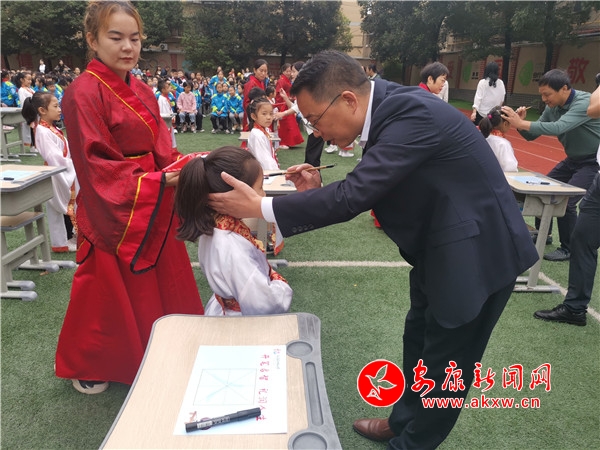 為讓一年級(jí)新生領(lǐng)略到中華民族傳統(tǒng)文化的魅力,9月23日上午,漢濱區(qū)江南小學(xué)攜手安康市博物館文廟管理所,隆重舉行了一年級(jí)新生“開筆禮”儀式,322名一年級(jí)新生開筆習(xí)禮學(xué)寫“人”字。開筆禮環(huán)節(jié)由安康文廟禮儀官趙琨主持。分為正衣冠、感恩鞠躬、朱砂啟智、擊鼓明志、啟蒙開筆等環(huán)節(jié)。通過(guò)系列活動(dòng),一年級(jí)新生感受到了知識(shí)及傳統(tǒng)文化的神圣,做“勤奮好學(xué)、端正品行、知書識(shí)禮、尊敬師長(zhǎng)”好少年的美好愿望已逐漸在孩子心田生根發(fā)芽。(劉改/圖文)