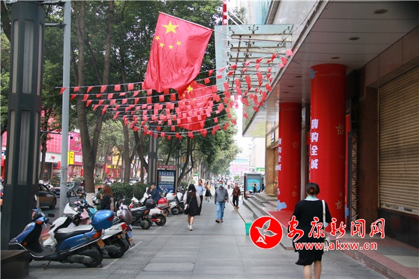 隨著國慶節(jié)的臨近,安康城區(qū)各條街道上一面面國旗已經高高懸掛,為新中國成立71周年的到來營造了濃濃的喜慶氛圍。(吳亞君/圖文)