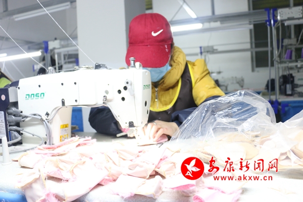 劉家溝社區(qū)工廠里,婦女們正嫻熟地踩著縫紉機(jī),在這里我們見到了同住包河村的貧困戶胡興英,據(jù)社區(qū)工廠經(jīng)理介紹,她是工廠里手腳最快、出勤率最高的人。“廠子剛辦起來她就來了,心靈手巧,一點(diǎn)不比年輕人差。”s4M安康新聞網(wǎng)
