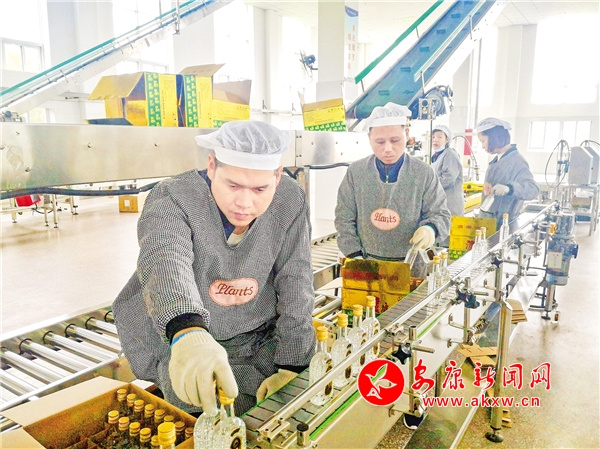 走進(jìn)陜西瀘康酒業(yè)(集團(tuán))公司成品二車間,只見(jiàn)近千平方米的大廳中,三條生產(chǎn)線平行分布。正在進(jìn)行小瓶瀘康酒灌裝的二班,他們?nèi)迦艘唤M在生產(chǎn)線旁,或上瓶洗瓶、或灌裝檢驗(yàn)、或貼標(biāo)裝盒、或包裝入庫(kù),分工協(xié)作,緊張有序。