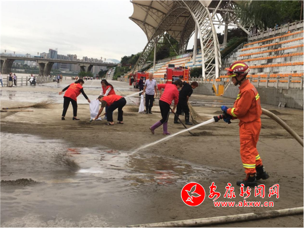 本網訊(通訊員 熊彬彬 李汶澤)日前,安康各縣區(qū)普降大雨,漢江水位持續(xù)上漲,城區(qū)沿江公園、步道等多處被淹。隨著水位回落,清理淤泥工作迫在眉睫。為盡快清理龍舟文化園臨江廣場上沉積的大量淤泥,避免淤泥干結加大清理難度,老城街道辦事處漢江辦、西關社區(qū)隨即聯(lián)系到漢濱區(qū)消防大隊協(xié)商開展清淤活動,漢濱區(qū)消防大隊表示志愿進行淤泥清理行動,盡快恢復環(huán)境衛(wèi)生,及早還廣大市民干凈整潔的娛樂生活環(huán)境。