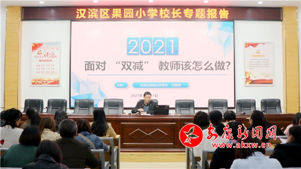本網(wǎng)訊(通訊員 譚華山)為進(jìn)一步落實(shí)“雙減”政策,促進(jìn)教育教學(xué)工作提質(zhì)增效,10月11日下午,漢濱區(qū)果園小學(xué)開展“雙減”專題講座。