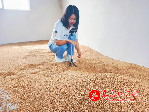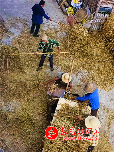 6月6日,驕陽似火。漢濱區(qū)赤衛(wèi)村周全洪一家忙得不亦樂乎,他戴著草帽和口罩,將麥穗一把一把喂進(jìn)脫粒機(jī),幫忙的鄰居們或抱捆持簸或木叉飛揚(yáng),妻子不停地晃動(dòng)手中竹篩,金燦燦的麥粒散落成堆,女兒夢(mèng)蝶一邊端茶水遞毛巾,一邊用手機(jī)直播:“這是陜南農(nóng)村傳統(tǒng)的打麥子方式。”“形象很酷,動(dòng)作很帥……是不是?”“要吃富硒新麥子,可以呀!”益農(nóng)的“新農(nóng)具”,帶貨又漲粉。