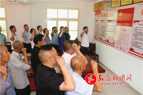 “我志愿加入中國共產黨,擁護黨的綱領,遵守黨的章程……” 面對鮮紅的黨旗,全體黨員再一次舉起右拳,重溫了一遍入黨誓詞,把“不忘初心、牢記使命”錚錚誓言銘記于心。活動中,區(qū)行政審批服務局派駐興勝村第一書記汪紀文組織大家學習了黨的十九屆六中全會精神,村黨支部書記艾禮彥就學習貫徹省十四次黨代會精神講了一堂專題黨課,對李開軍等5名優(yōu)秀共產黨員進行了表彰。會議要求全體黨員要自覺加強學習,以優(yōu)秀黨員為榜樣,發(fā)揮黨員的先鋒模范作用,事事走在前、干在先,勇于擔當作為。加強支部聯(lián)建,互幫互學互補,扎實做好聯(lián)村幫扶工作,為鄉(xiāng)村振興貢獻力量。