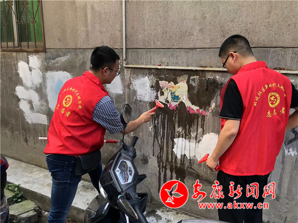活動中,志愿者分為四組在轄區(qū)主街道及背街小巷清理野廣告和衛(wèi)生死角、整治車輛亂停亂放和占道經(jīng)營、夯實“門前四包”。6DT安康新聞網(wǎng)