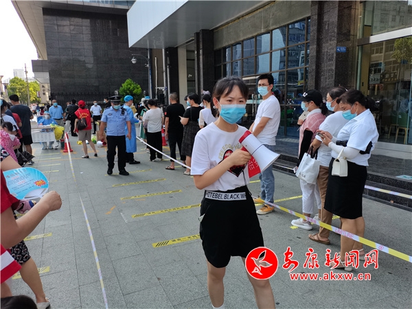 按照全市新冠肺炎疫情防控指揮部的周密部署,8月18日下午,漢濱中心城區(qū)啟動第二次全員核酸檢測工作 。圖為安火路社區(qū)居民在執(zhí)勤民警、醫(yī)務人員、社區(qū)工作者和志愿者的密切配合下,有序開展核酸檢測。(陳榮斌 攝) 4ga安康新聞網(wǎng)
