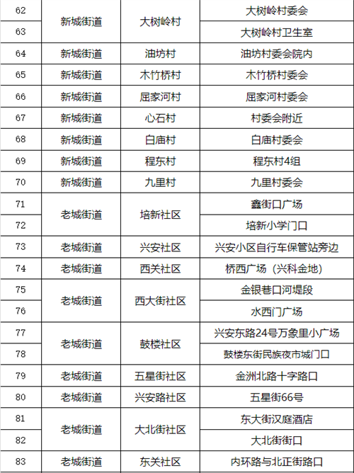 漢濱區(qū)中心城區(qū)全員核酸檢測(cè)采樣點(diǎn)一覽表