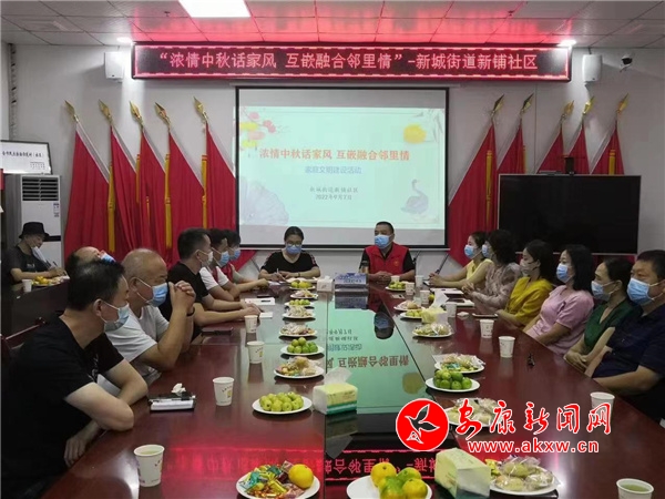 新鋪社區(qū)組織黨員群眾開展“濃情中秋話家風 互嵌融合鄰里情”主題活動,觀看微視頻《中秋節(jié)的來歷》,品讀中秋詩詞,互道祝福。