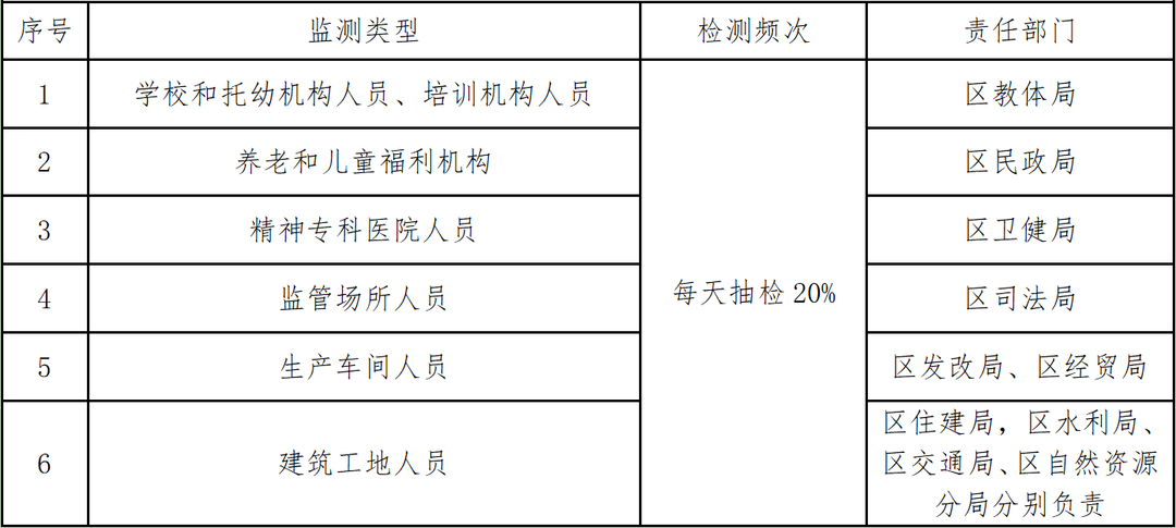 重點(diǎn)人群重點(diǎn)場(chǎng)所周期性核酸檢測(cè)一覽表