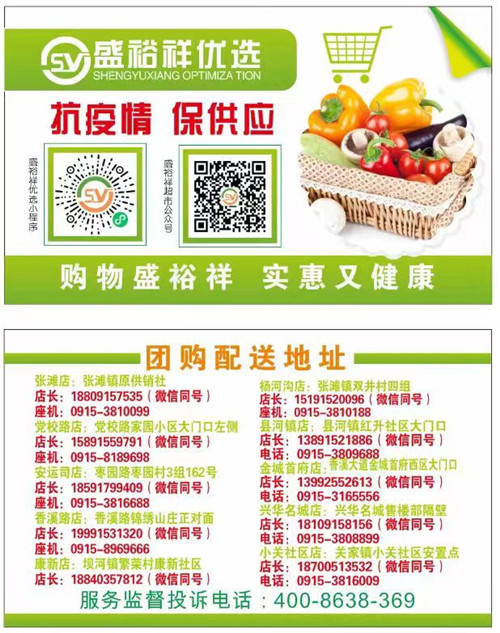 為滿足廣大市民群眾生活必需品的購買需求,避免因人群聚集造成的交叉感染風(fēng)險(xiǎn),漢濱區(qū)經(jīng)貿(mào)局組織漢濱中心城區(qū)多家保供企業(yè)(超市)推出免費(fèi)送貨服務(wù),市民朋友可撥打就近購物店電話,各商家將盡心盡力為大家做好服務(wù),解決您的購買需求。PvN安康新聞網(wǎng)