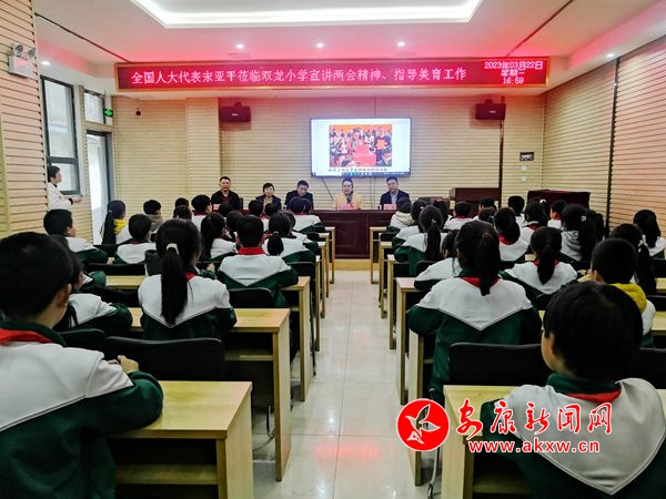 期間,宋亞平借助參會圖片,向雙龍鎮(zhèn)師生宣講了2023年全國“兩會”盛況及主要精神,希望山區(qū)學(xué)校組織師生深入學(xué)習(xí)宣傳“兩會”精神,迅速把思想和行動統(tǒng)一到全國“兩會”決策部署上來,認(rèn)真貫徹黨的教育方針,落實立德樹人根本任務(wù),堅持“五育并舉”,建立美育基地長效運行機(jī)制,堅持以賽促學(xué),堅持美育與研學(xué)融合發(fā)展,扎實推進(jìn)學(xué)校美育工作走深走實,引領(lǐng)鄉(xiāng)村學(xué)校特色發(fā)展、內(nèi)涵發(fā)展;勉勵山區(qū)學(xué)生感恩奮進(jìn),樹立遠(yuǎn)大志向,刻苦學(xué)習(xí),用知識改變命運,用心觀察身邊生活,用心創(chuàng)作展示鄉(xiāng)村之美,抒發(fā)對美好生活的向往,展現(xiàn)愛黨、愛國、愛家鄉(xiāng)的情懷,在美育的熏陶下全面發(fā)展,努力成為德智體美勞全面發(fā)展的社會主義建設(shè)者和接班人。