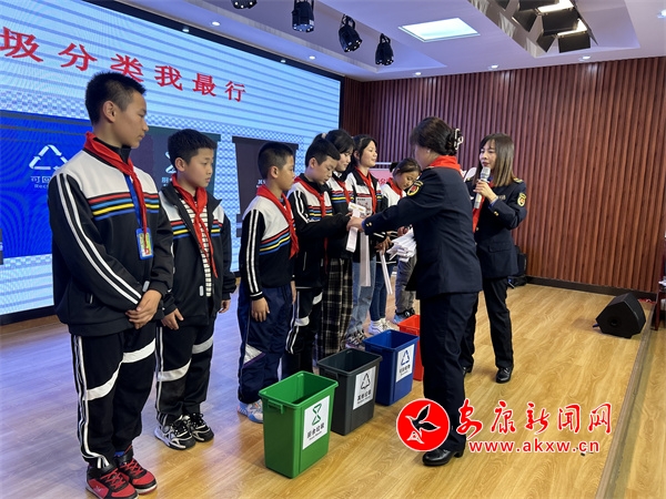 課堂上,城管執(zhí)法人員王雪通過圖文講解、知識(shí)問答等方式,用通俗易懂的語言、生動(dòng)活潑的形式,向?qū)W生們講述了垃圾分類的重要意義、如何正確分類投放垃圾等知識(shí)。