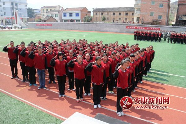 漢陰縣平梁初中舉行軍訓(xùn)匯操表演暨“唱響國(guó)歌”歌詠比賽