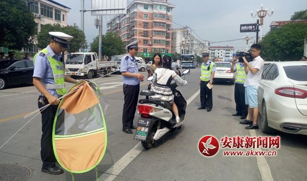 安康新聞網(wǎng)訊(通訊員 廖曉濤 羅傳勇)受夏日酷暑高溫、陰雨天氣影響,我縣部分市民在摩托車、電動(dòng)車加裝“遮陽傘”上道路行駛的現(xiàn)象日益增多,因此引發(fā)的道路交通事故也在增多。為扎實(shí)推進(jìn)暑期道路交通安全隱患集中整治工作,根據(jù)我縣雙創(chuàng)工作實(shí)際和漢政辦發(fā)【2016】82號(hào)文件要求,2016年7月18日上午,漢陰縣公安局交警大隊(duì)抽調(diào)城區(qū)中隊(duì)全部警力開展城區(qū)電動(dòng)車、摩托車非法加裝“遮陽傘”行為的集中整治行動(dòng)。