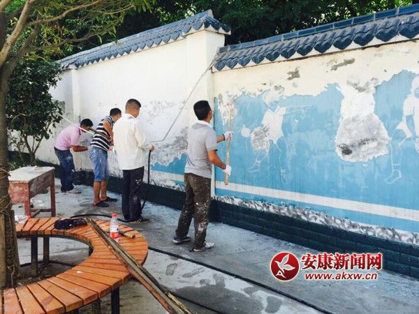 原來這是該校校園圍墻美化工程正在緊張的實施當中,盡管酷暑難當,但學校領(lǐng)導依然堅守崗位,工人師傅們更是揮汗如雨,認真細心地做好每一道工序。該校近年來校園基礎(chǔ)設施建設發(fā)生了顯著變化,特別是總面積達12畝的塑膠操場建成后,更是讓原本清新整潔的校園新增了一道亮麗的風景線。讓人感到美中不足的是原有500余米的圍墻墻面有些斑駁陳舊,學校積極爭取項目資金,并于7月4日正式開始對圍墻進行“美化”,秋季開學之際,重返校園的師生將會看到一扇扇嶄新的、充滿人文氣息的文化宣傳墻。