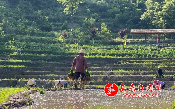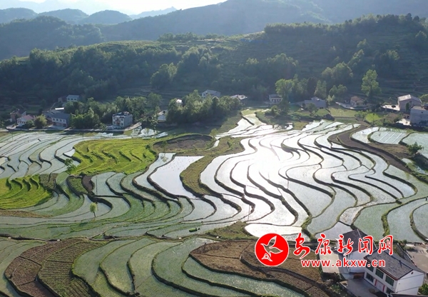 放眼望去,層層梯田披上了一襲綠色的新裝,微風(fēng)吹過,秧苗輕輕搖擺,蕩漾起無限生機。在持續(xù)兩周的插秧期,村民們每天從早上六點一直忙到下午七點鐘才收工,“手把青秧插滿田”的農(nóng)忙景象與大大小小形狀各異的水田,構(gòu)成一幅詩意盎然的田園風(fēng)光圖。