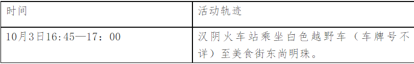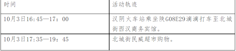 根據(jù)流調(diào)情況,現(xiàn)將漢中市西鄉(xiāng)縣兩例初篩陽性病例涉及密切接觸者在漢陰縣的公共場所活動(dòng)軌跡公布如下:
